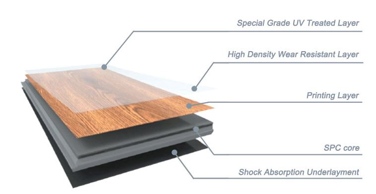 4. SPC Core – The SPC core is made by combining limestone powder and stabilizers to create a dimensionally stable and waterproof core.